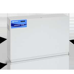 Uвых.12В, Iвых.5А(до 5,5А кратковрем.), Uвх.140…265В, Pпотр.87Вт, защита от КЗ и разряд., свет.индикац., вых."СК"(АВАРИЯ), под АКБ 2х12В/17Ач, IP20, tраб.-10…+50°С, 372х86х253 мм, подкл.резерв.блока БР12, метал.корпус