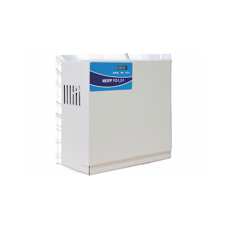 Uвых.12В, Iвых.1.2А(до 4А кратковрем.), Uвх.130…265В, Pпотр.30Вт, защита от КЗ и разряд., свет.индикац., вых."ОК"(Сеть;АКБ;Разряд), вых."СК" (Тампер), под АКБ 1х12В/7Ач или 2х12В/4.5 Ач, IP20, tраб.-25…+50°С, 194х86х184 мм, метал.корпус