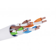 Тип кабеля: UTP (неэкранированная витая пара) Категория: 5E Длина: 305м Диаметр жилы 0,45 мм Скорость передачи данных: До 1 Гбит/с Конструкция: 4 пары медных проводников