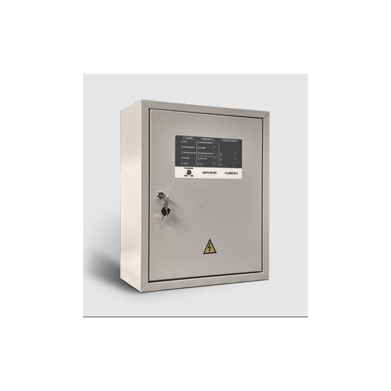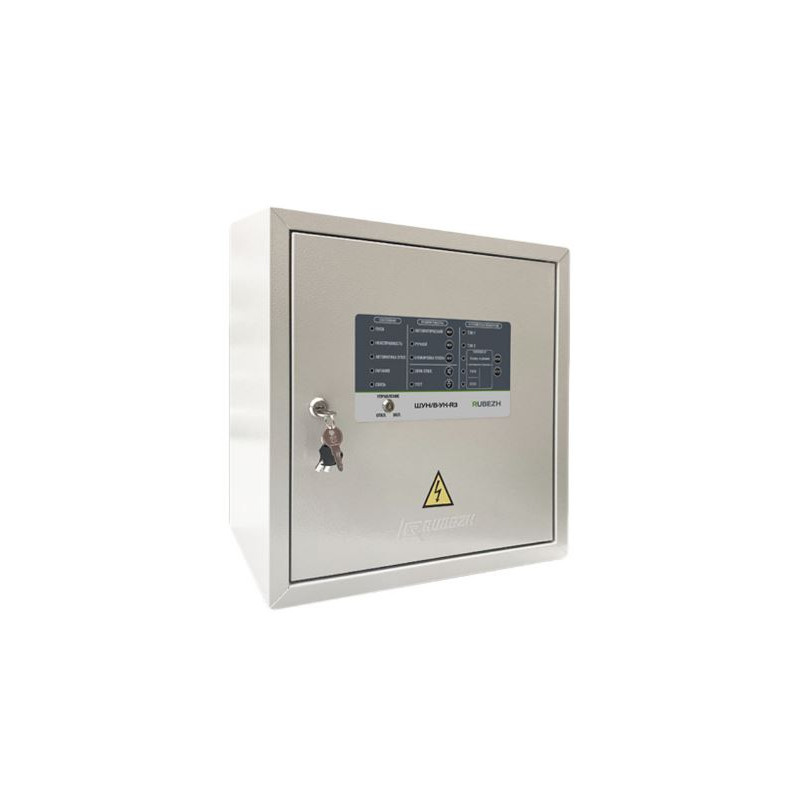 Шкаф управления пожарный ШУН/В-УК прот.R3 с дополнительной функцией управления ТЭНами канальных калориферов предназначен для управления работой электродвигателя вентилятора приточной вентиляции (подпором воздуха) и двухступенчатым (одноступенчатым) калорифером подогрева воздуха в системе противопожарной защиты под управлением приемно-контрольного прибора «Рубеж-2ОП» прот.R3.