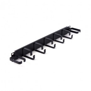 Кабельный органайзер, чёрный, 1U. Имеет металлическую основу и 7 металлических колец для удерживания кроссовых шнуров, улучшая тем самым эстетику распределительного пункта. Нет необходимости применять дополнительные монтажные инструменты. Стандарт 19 дюймов. Облегчает конфигурирование и внесение изменений в системе.