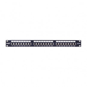 Коммутационная 24 портовая панель, необходимая для консолидации информационных кабелей этажной (горизонтальной) подсистемы СКС. Служит для удобства коммутации и администрирования СКС. Коммутационная панель (patch panel) состоит из 24 портов RG 45 с фронтальной стороны и разъёмов DUAL IDC с тыльной стороны.