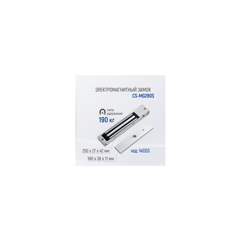 Электромагнитный замок служит для блокировки дверей различного типа. Может применяться в составе систем контроля доступа для защиты от несанкционированного прохода, использоваться совместно с домофонами и контроллерами, оснащенными бесконтактными считывателями карт(RFID) различного типа. Диапазон рабочих температур -40 ° С ~ +55 °. Запирание осуществляется путем примагничивания ответной пластины, закрепленной на двери к неподвижно закрепленному электромагниту при подаче питания. Для открытия двери необходимо обесточить замок.