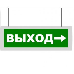 Двухстороннее световое табло подвесного крепления предназначено для использования в качестве указателя направления эвакуации людей при пожаре.