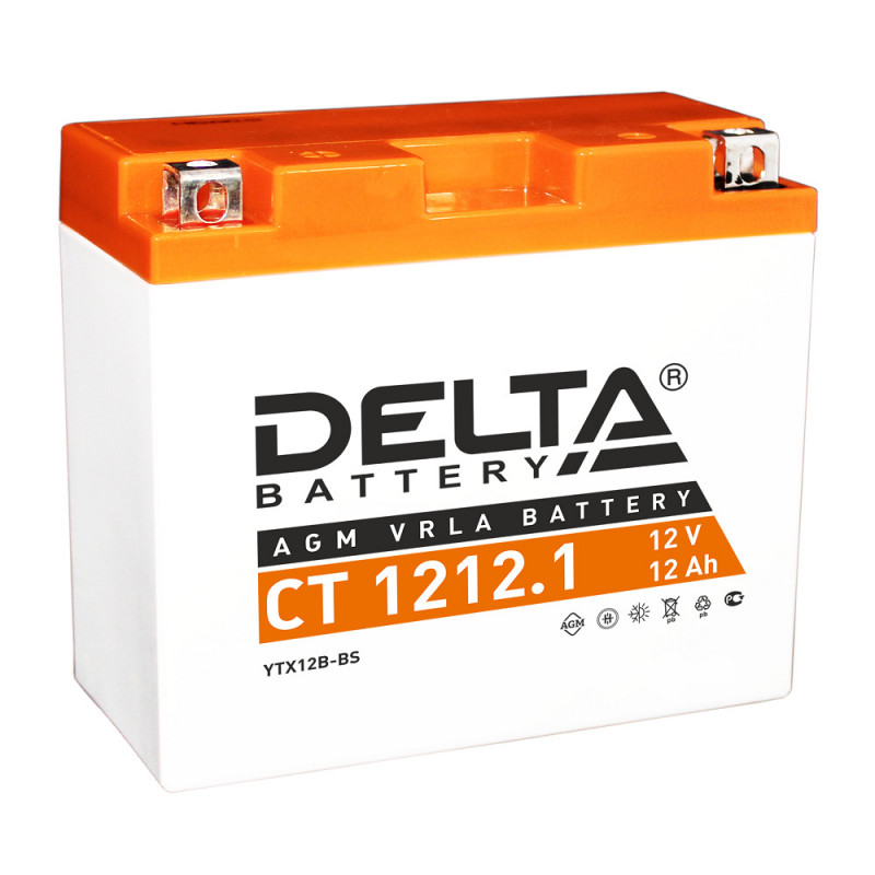 Стартерный аккумуляторDelta CT 1209. Напряжение 12В, емкость 12Ач.