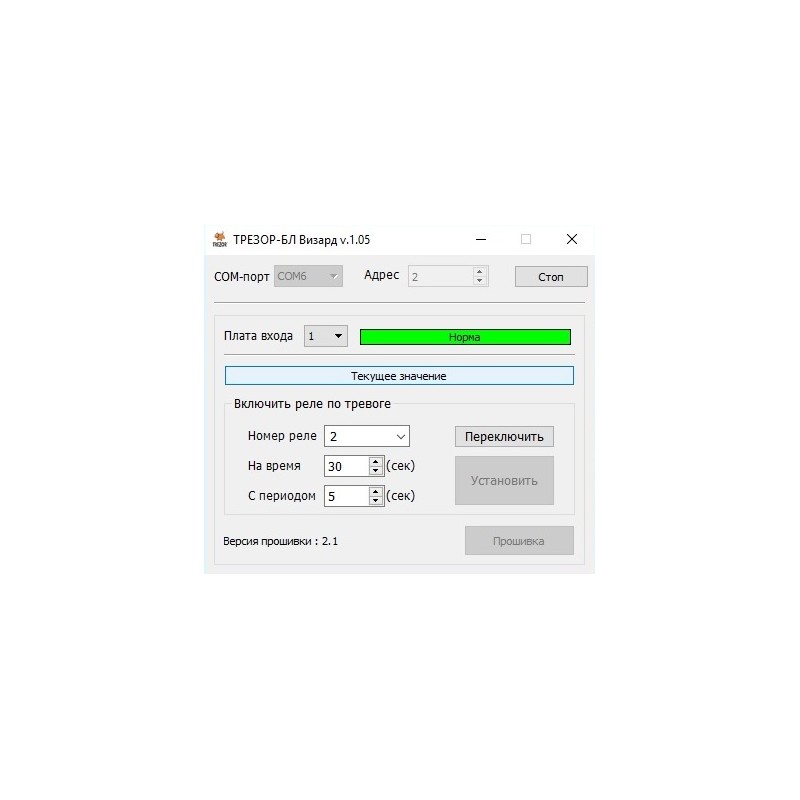 настройка при помощи программного обеспечения «ТРЕЗОР-БЛ Визард»;