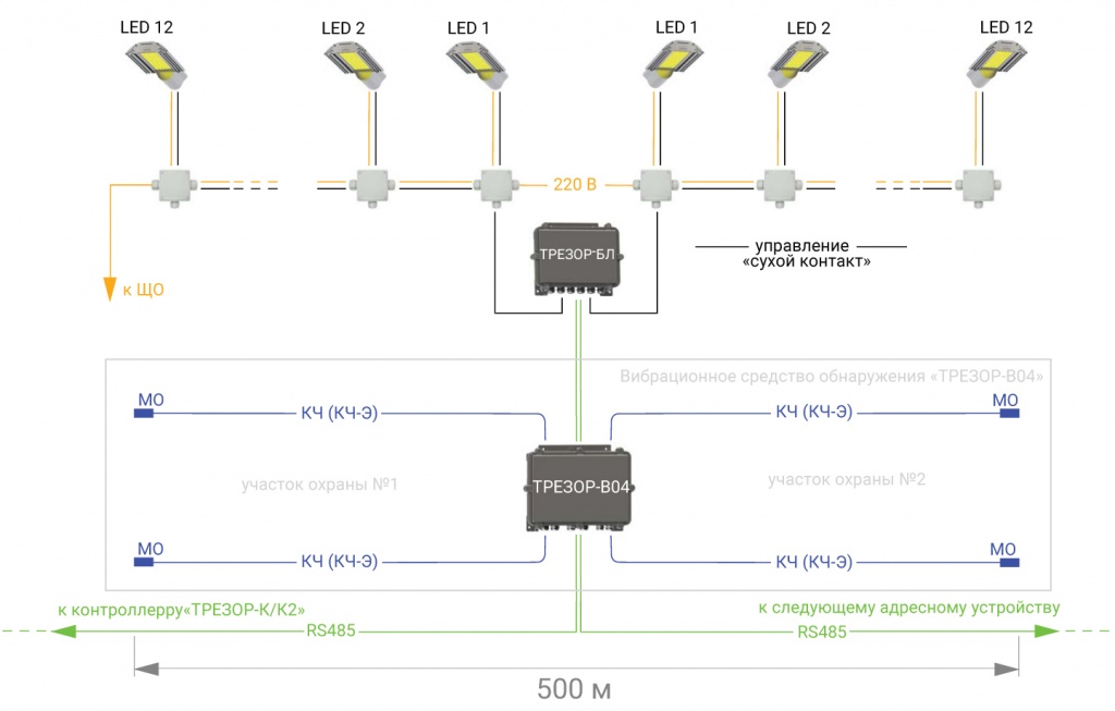 При работе в составе адресной системы охранной сигнализации периметра блок линейный «ТРЕЗОР-БЛ» подключается проводной линии интерфейса «RS-485».