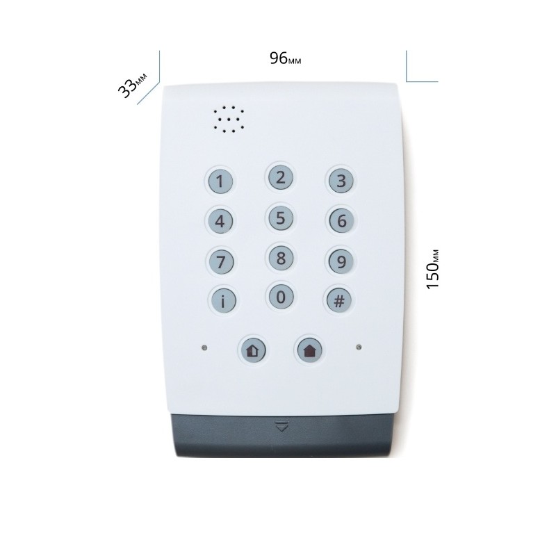 Беспроводная контрольная панель с клавиатурой на корпусе.
