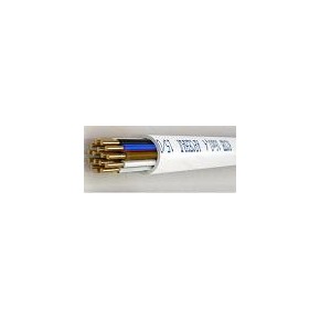 кабель парной скрутки (шаг скрутки пар различен) с однопроволочными медными жилами диаметром 0.4 мм, с изоляцией из композиции полиэтилена, с оболочкой из белого ПВХ пластиката, для внутренней неподвижной прокладки.буфта 200м. не режется