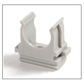 Предназначена для крепления гладких труб ПВХ или гофрированных труб одного диаметра к поверхности стен, потолков, полов или перегородок. Для монтажа предусмотрено технологическое отверстие под дюбель или саморез. Для удобства блочного монтажа состыковываются друг с другом с помощью специальных фиксаторов типа «ласточкин хвост».