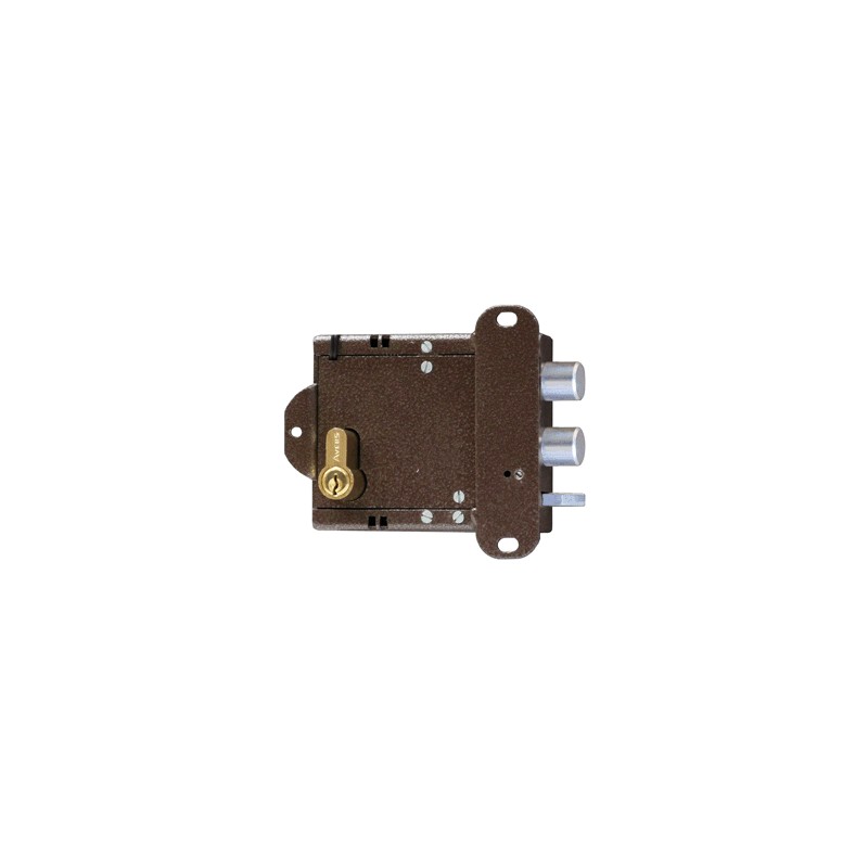 Замок электромеханический накладной, без ручки с цилиндрическим механизмом. 12В/0.8А, 2 мощных ригеля D18мм. 110х92х30 мм, -40-+60С (возможность установки правая левая дверь), без фиксатора.