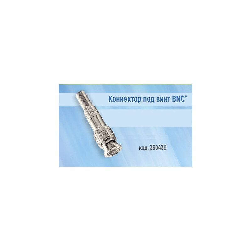 BNC-коннектор (BNC сокр. от Bayonet Neill Concelman) под винт - электрический разъем с байонетной фиксацией закрепляется на кабеле зажимом с помощью винта центрального контакта (центральная жила - под винт, оплетка - обжимается). Этот способ крепления значительно проще и быстрее, чем пайка, но его надежность и качество соединения остаются на неизменно высоком уровне. Металлический колпачок с пружиной защищает соединения и предотвращает кабель от перегиба в месте крепления к разъему.