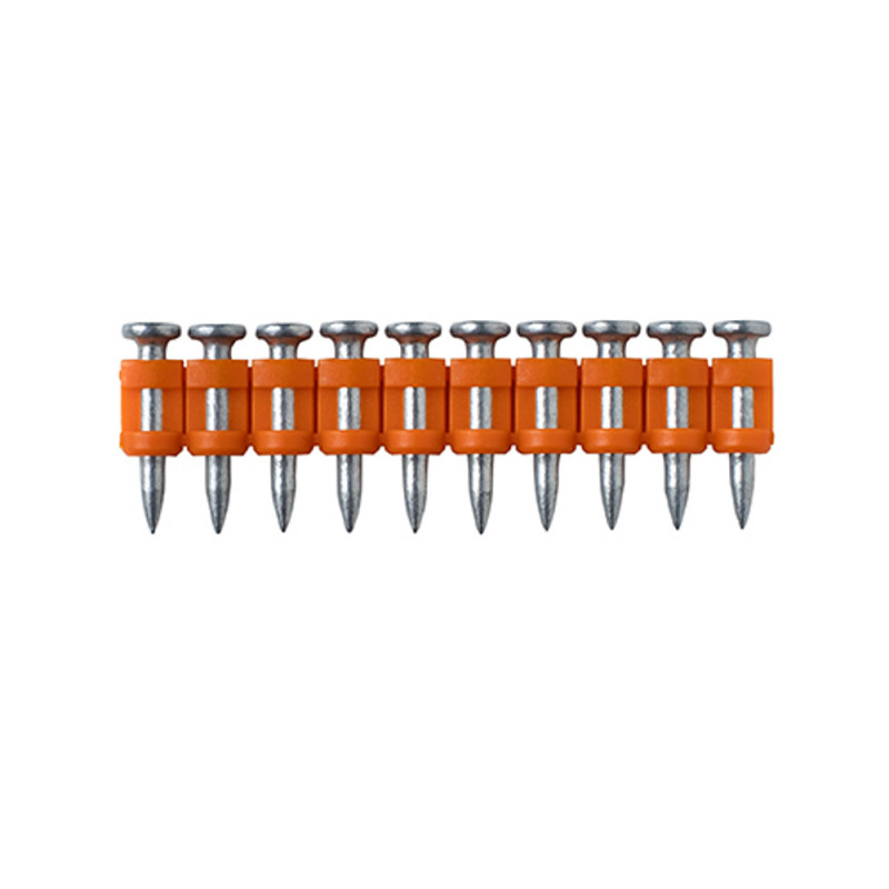 Гвозди для монтажных пистолетов FEDAST тип CN с кованым наконечником Bullet Point для лучшего внедрения в особо "сложный" бетон: бетон высокой марки прочности, высотные монолитные строения, панельные строения, колонны, плиты перекрытия.