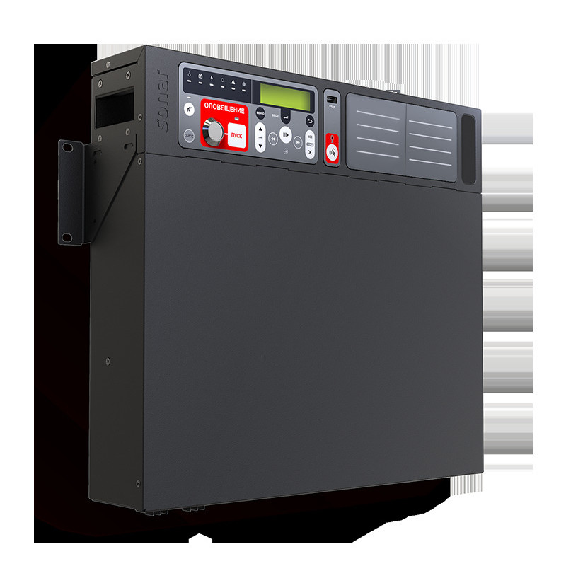 Прибор управления оповещением пожарный Sonar SPM. Sonar SPM-A01050-AW: мощность 500 Вт, 1 зона/2 линии оповещения, прием сигнала от ОПС по АЛС, установка на стену..