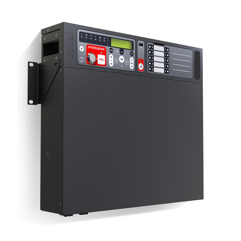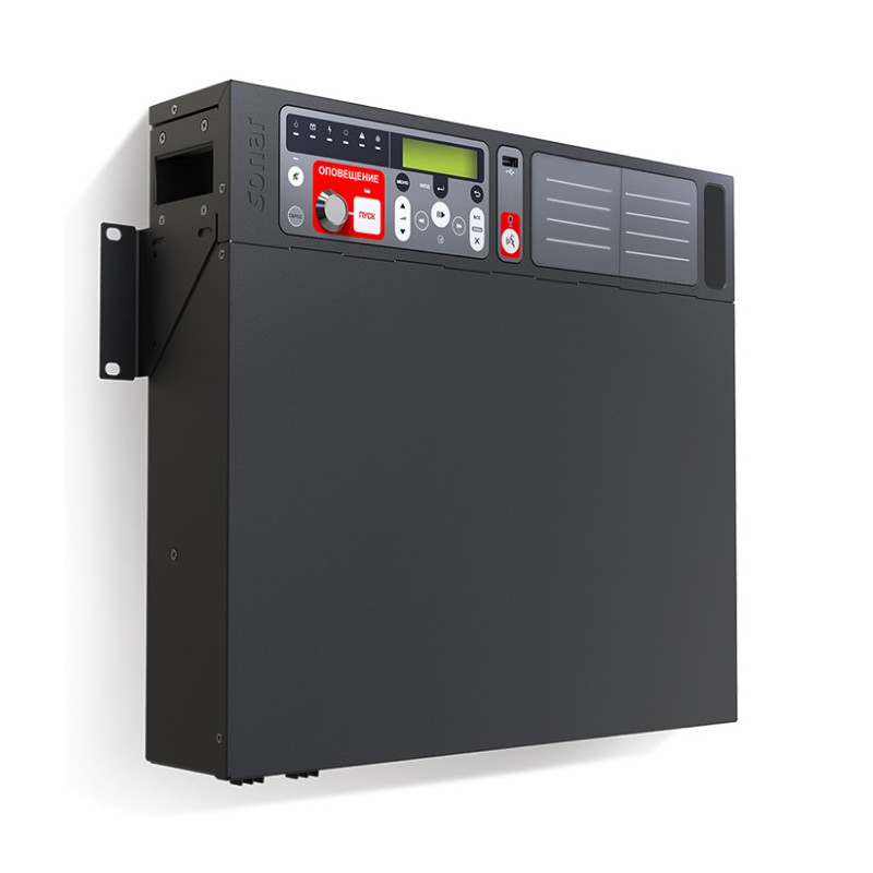 Прибор управления оповещением пожарный Sonar SPM. Sonar SPM-A01050-DW: мощность 500 Вт, 1 зона/2 линии оповещения, прием сигнала от ОПС по "СК", установка на стену.