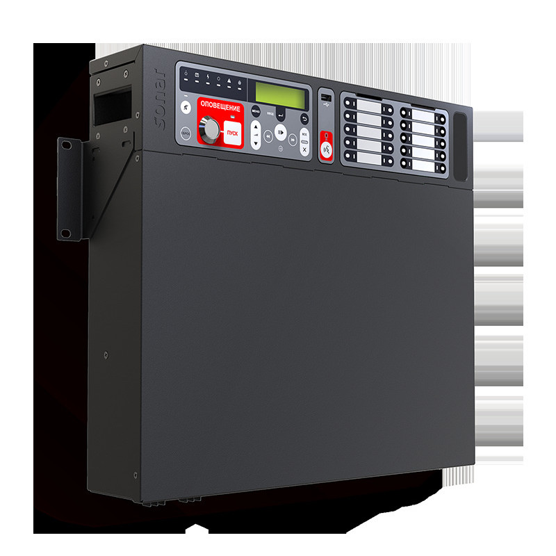 Прибор управления оповещением пожарный Sonar SPM. Sonar SPM-B20085-DW: мощность 850 Вт, 20 зон/20 линий оповещения, прием сигнала от ОПС по "СК", установка на стену.
