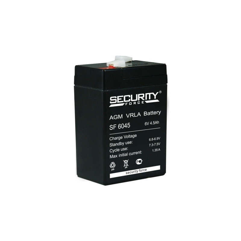 Напряжение 6В, емкость 4,5Ач, срок службы до 5 лет. Разработана для резервного электропитания охранно-пожарных систем и приборостроения. Габариты, мм (Д/Ш/В) 70/47/101 (107 с клеммами).