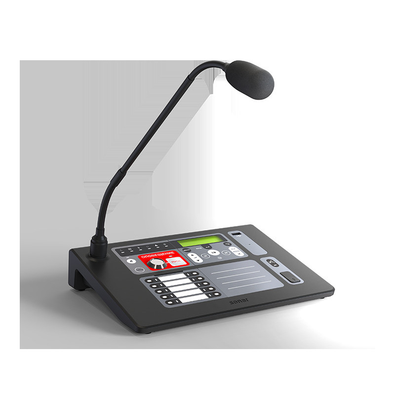 Пульт микрофонный СОУЭ Sonar SRM. Sonar SRM-7010: 10 зон, подключение к моноблокам SPM-B, SPM-С по интерфейсу DAP, доп. вход питания 24 В, прием сигнала АВАРИЯ (сухой контакт) от ИВЭПР.