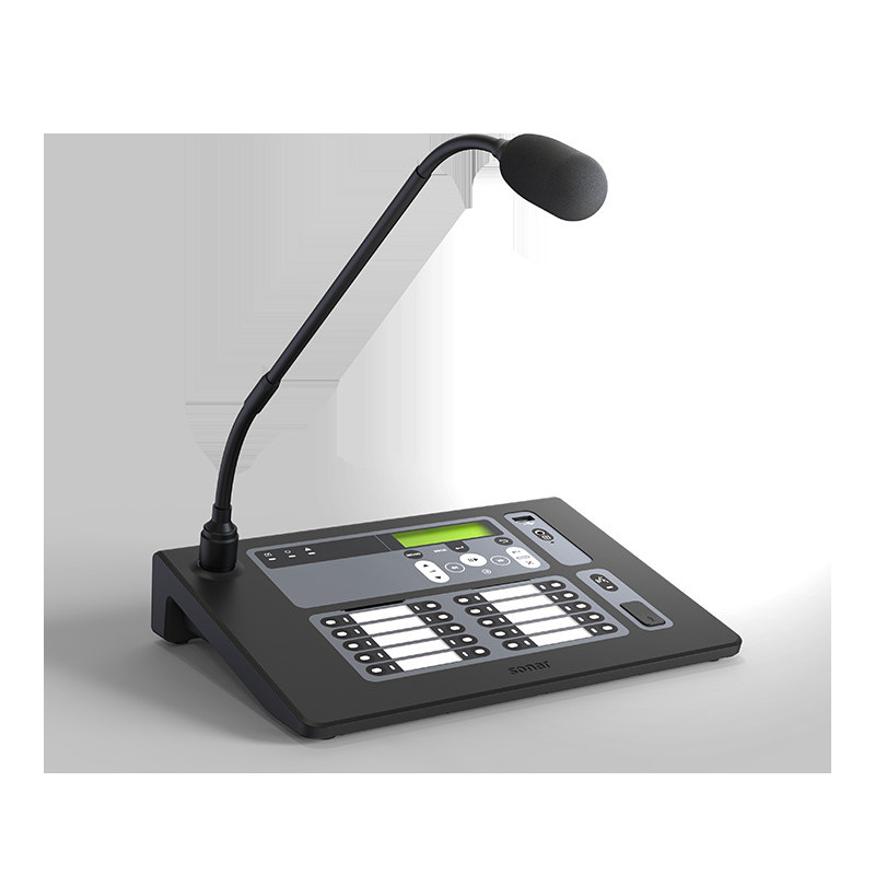 Пульт микрофонный Sonar SRM. Sonar SRM-7020С: 20 зон, подключение к моноблокам SPM-C по интерфейсу DAP, доп. вход питания 24 В, встроенный MP3/FM-плеер (воспроизведение файлов только с внешнего USB-флэш-накопителя), линейный вход.