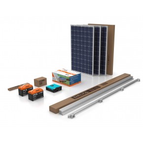 Поставляется в максимальной степени готовности к работе: солнечные модули, инвертор ECO с соединительными кабелями, аккумуляторные батареи, комплект крепежа, инструкция по монтажу и эксплуатации.