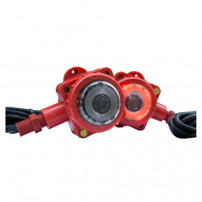 Оповещатель световой стробоскопический взрывозащищенный 1Ex mb IIB T6 Gb; два режима работы: вспышка, двойная вспышка; возможность синхронизации вспышек по линии связи; U-пит.10...18 В, I-потр.100 мА; встроенный резистор 8.2 кОм для контроля линии оповещения устройством УКЛО; IP66/IP67, t-раб.-55...+55°С, 155x108x75 мм, 0.5 кг. Длина соединительного кабеля 1.5 м