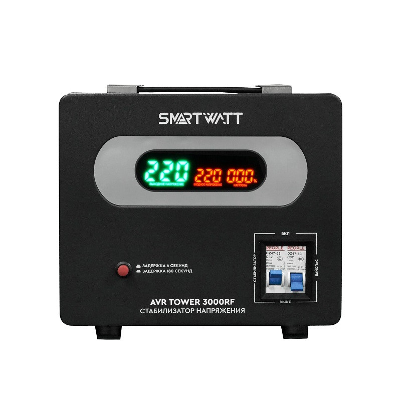 Напольный стабилизатор напряжения SMARTWATT AVR TOWER 3000RF предназначен для защиты бытовой техники, электроинструмента и прочего оборудования.